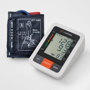 정확도 높은 팔뚝형 모델로, 부정맥 감지와 고혈압 경고 표시 기능이 있습니다.